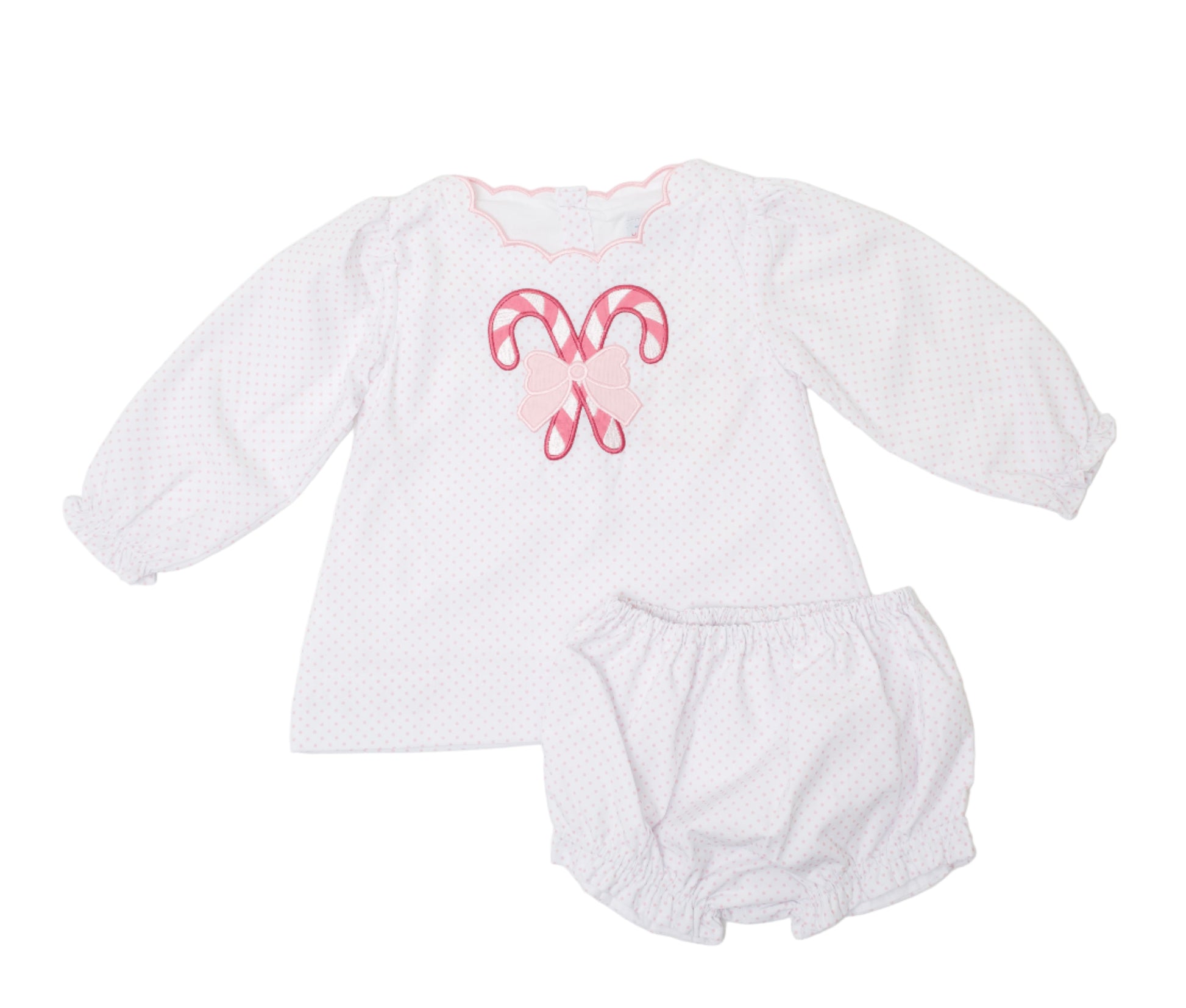 Nothing says Christmas like candy canes — and this Candy Cane Cutie Set captures that festive magic in the sweetest way. Crafted in a soft, breathable woven fabric, this set features charming appliqué candy cane details that add a playful yet classic holiday touch.