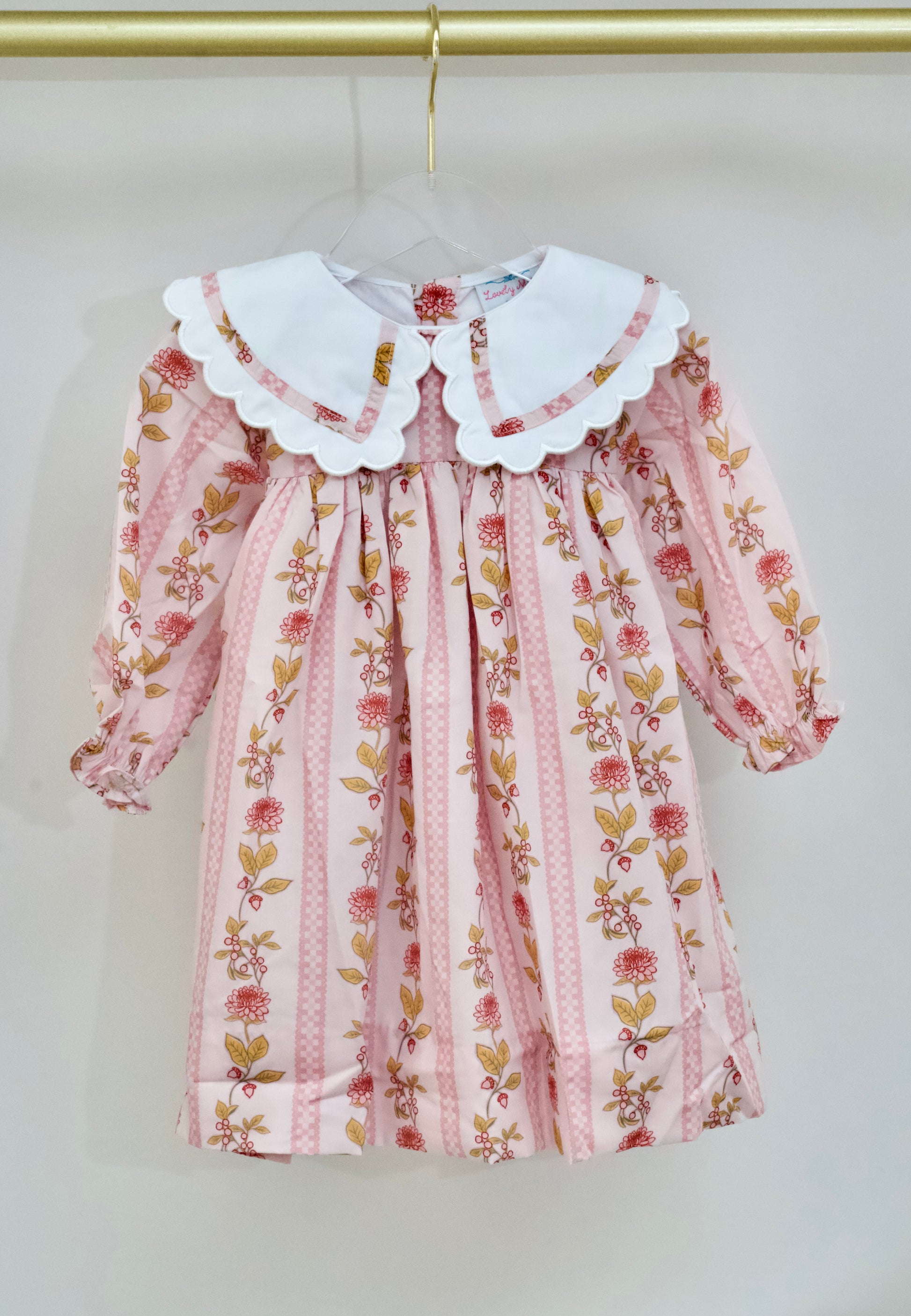 All the sweetness of spring, but in gorgeous fall colors! This dress features an oversized collar with a floral pattern.